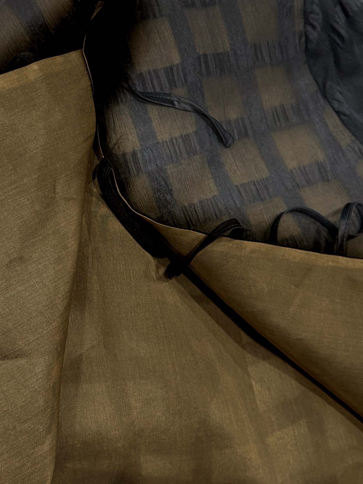 Tillverkad Av Sidenorganza Med Ren Sidenfoder, Med Ett Texturerat Rutigt Jacquardmönster. Den Runda Halsringningen Skapar En Ren, Klassisk Ram, Medan Den Justerbara Banddetaljen Lägger Till Subtil Feminitet. Lager-på-lager Konstruktionen Förbättrar Dimension Och Rörelse, Och De Långa Ärmarna Balanserar Den Croppade Längden För En Modern Silhuett. Genom Att Blanda Avslappnad Enkelhet Med Tidlös Elegans, Höjer Den Lätt Vardagsstilen.