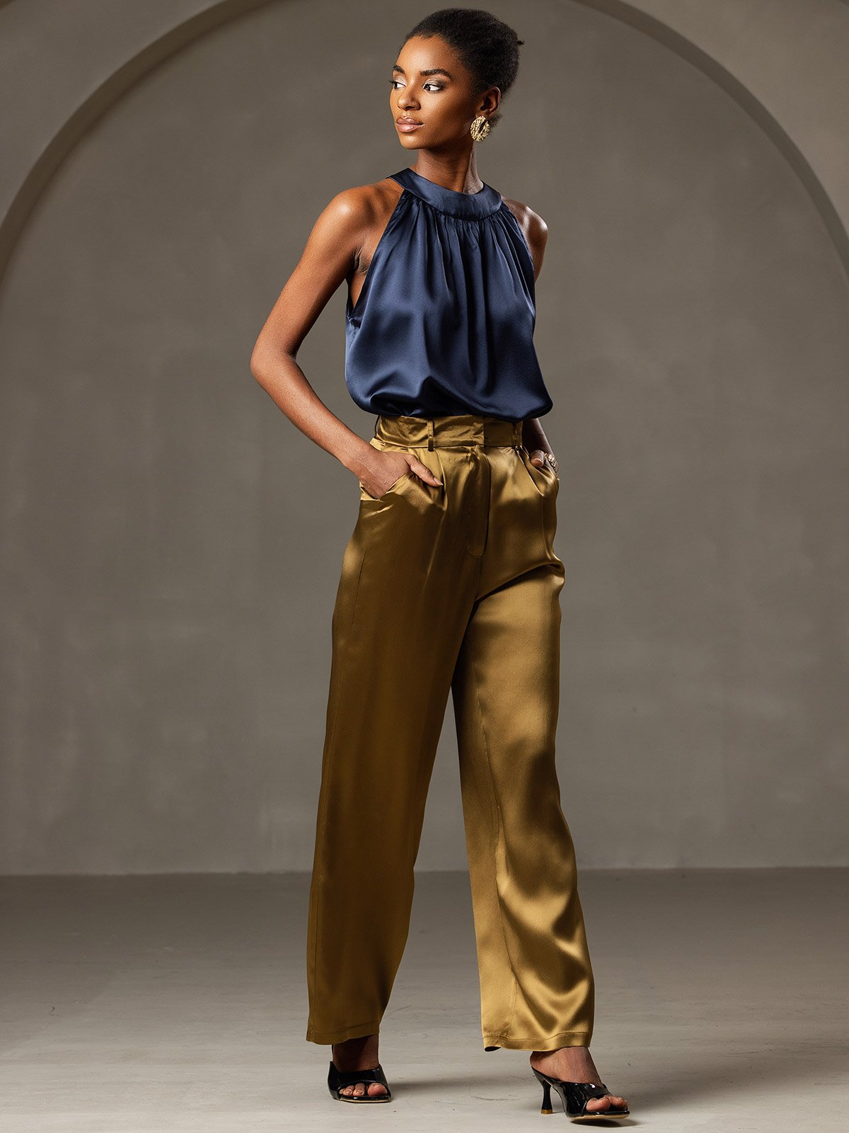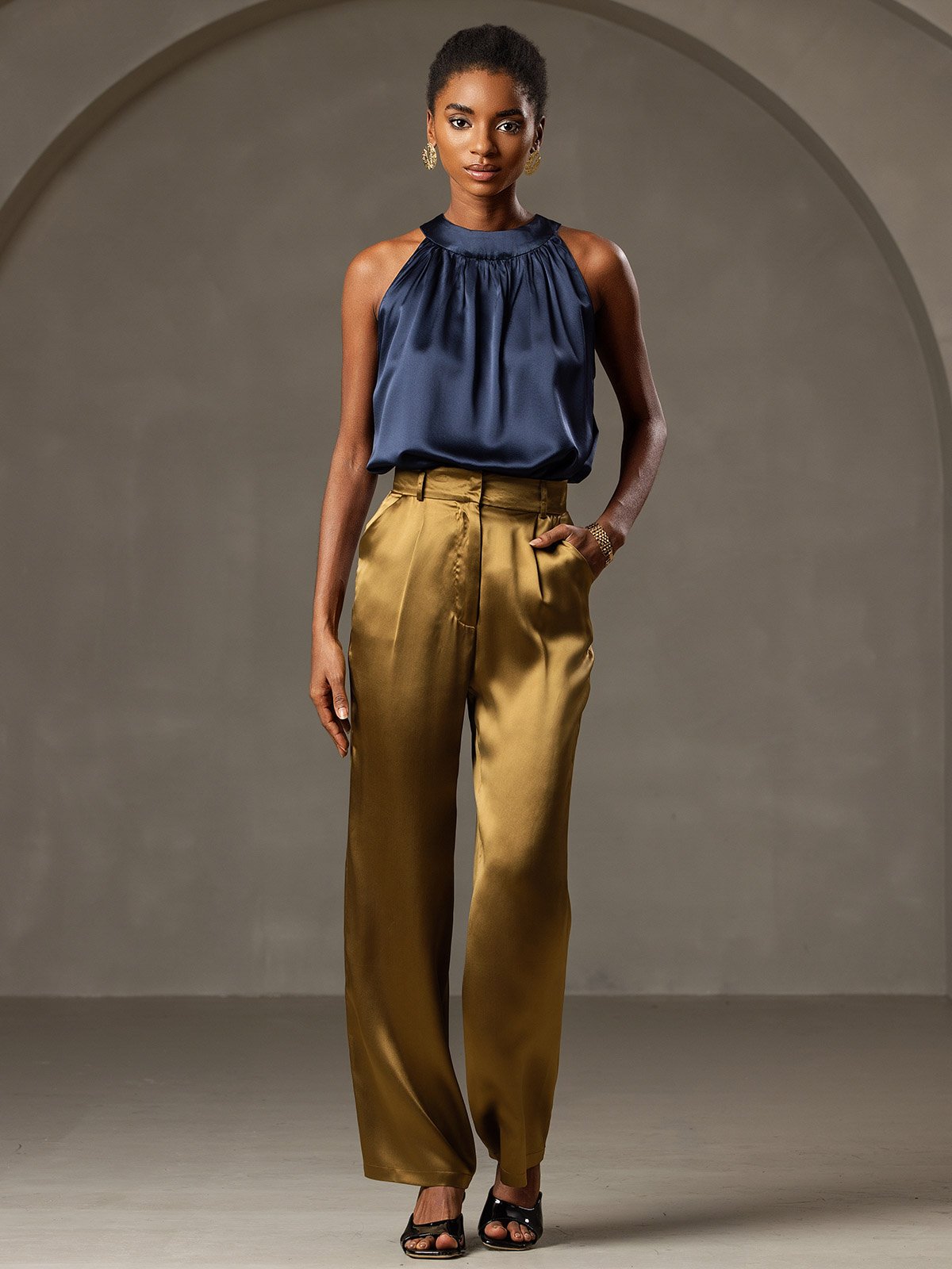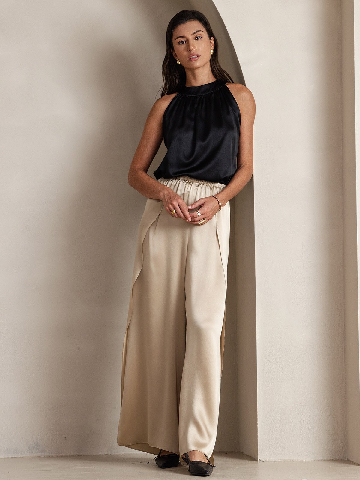 19Momme Top Halter in Seta Elegante con Spalle Scoperte